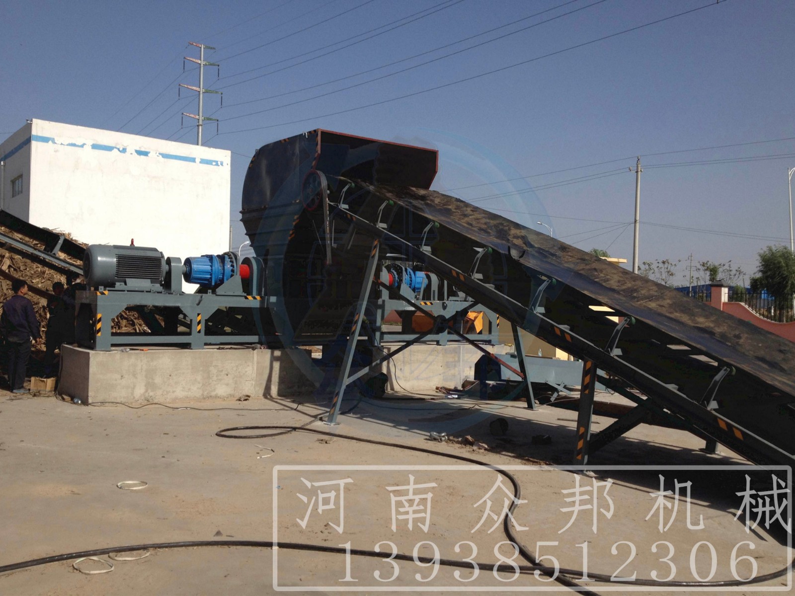 大型木材綜合破碎機工作原理大型木材綜合破碎機前段采用的是鏈板輸送的形式,鏈板長度長主要采用抓車上料一次性上料多,原材料只要放到鏈板輸送上經過輸送將原材料,輸送至主機前段的進料壓輥,經進料壓輥的碾...